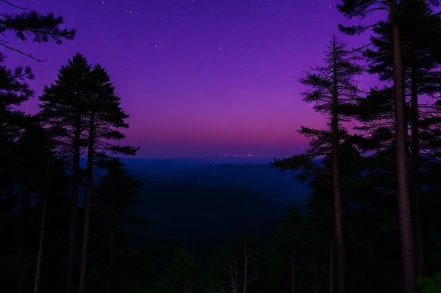 The sky was a deep violet, the first stars beginning to appear.