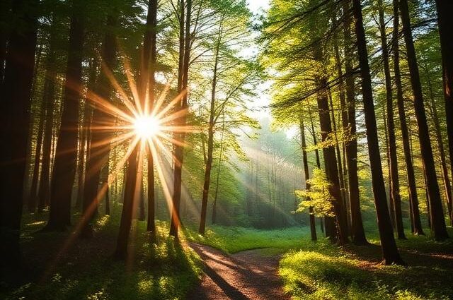 They continued walking, and the forest began to glow with early light — soft gold on the moss, pale pink on the bark, a quiet shimmer in the air.